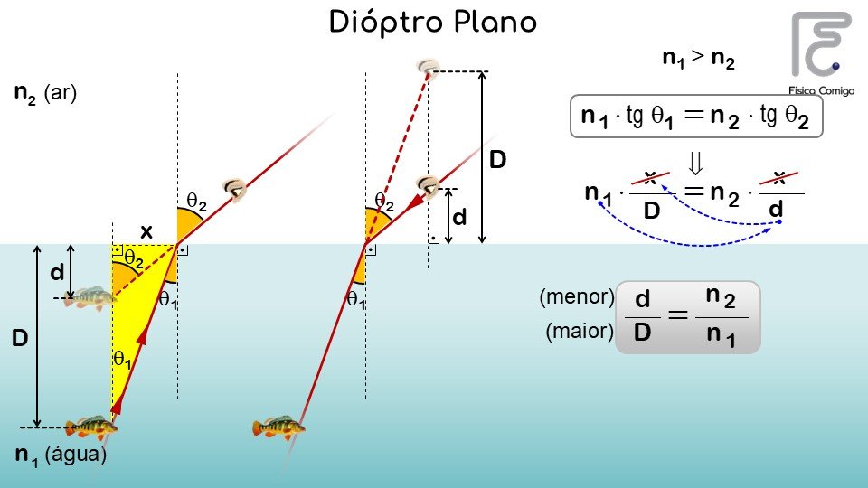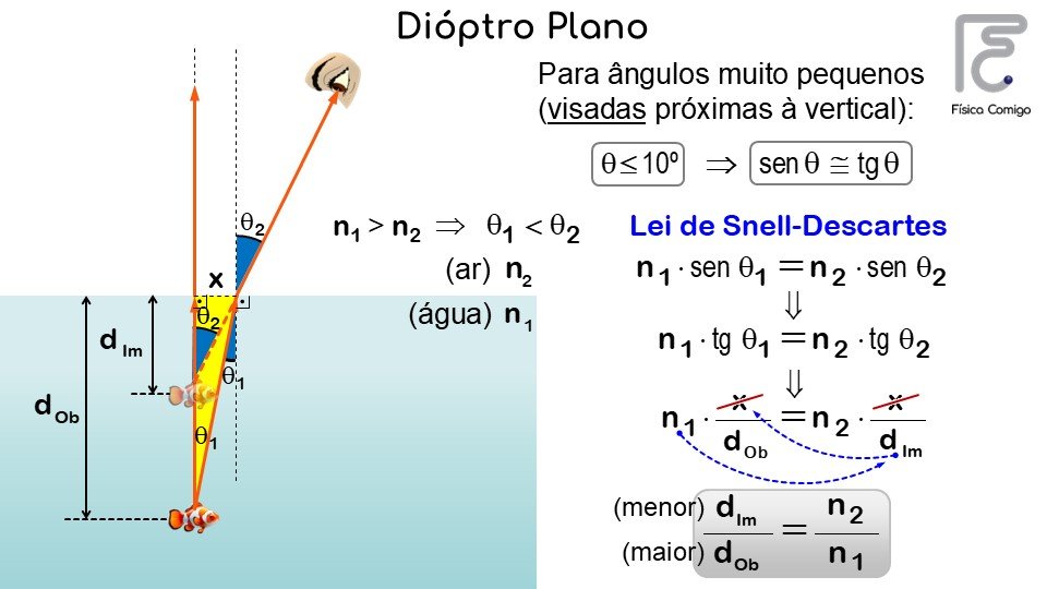 Conceito de refração / índices de refração absoluto e relativo / relação de Snell-Descartes